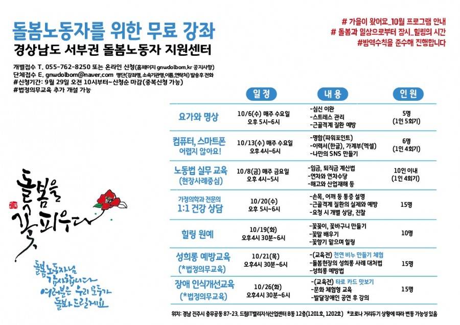 | 장소 | 경상남도 서부권 돌봄노동자 지원센터 배움터 |
